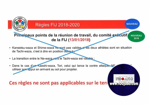 Yesterday, 05th of February, the French judo federation, the national technical director sent an email to the leagues, departmental committees, technical frameworks and the national commission of arbitration to inform them that "the rules of arbitration issued by the International Judo Federation at the end of 2017, amended early 2018, do not match the image of the judo of our federation".